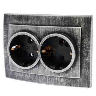 Розетка двухместная открытой установки с з/к РА 16-011, полистиролУХЛ4, 250В, 16А, IP20